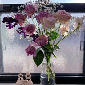 💜🩵薄紫色のスイトピー🩵💜 ✨スイトピー✨今日のお花✨ 娘達からの 誕生日プレゼント(3年前) ここのお花屋さん好きだったのですが、離れた所に移転されました。残念🥹