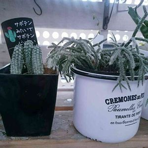 サボテンかと思ってたら実は多肉植物左のやつね。それをダイソーのマグカップに(*´艸`*)次の写真へ続く…。分かりにくいですけど(-∀-`; )