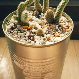 初🔰リメ缶に、頂いたサボさん🌵植え替えて見ましたぁ🎵(≧∇≦)