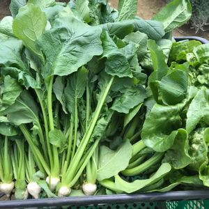 今日は、午前中に畑に行ってきました。(前編) 今日午前中の青森市内は、まだ小雨が降っていて寒かったです😖 野菜は順調に育ってました。 左上から、 ミニトマト 、白菜 春菊 、大根 、ほうれん草 かぼちゃ、チンゲンサイ です。 白菜は、かなり結球してきてるんですが、防虫ネットをかけていないので、虫に食べられています。 かぼちゃは、先週13日に受粉しましたが、うまく受粉できたのかどうか、まだわかりません。 収穫もしてきたんですが、 (後編)に続きます😊