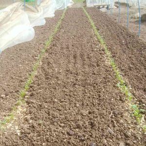 ☔上がり、人参畝の中耕を行いました。 本葉が出始めています。 1回目の間引きまで、もう少し。 播種後:31日目 3/13 11時59分撮影
