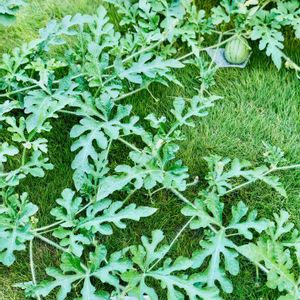 すいか🍉 8個実が大きくなってきました。 よかった〜 とりあえず写真には3個🍉 ツル伸び放題❗️