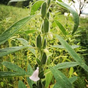ゴマの実がなってきました。 ゴマなんてニッチなモノを自作してみたかったのです😂 国産のごまは市場だと約0.1%しか流通していないぐらい外国たのみなのだそう、、