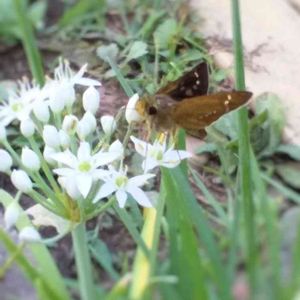 ニラの花にセセリチョウが来てくれていました。 チャバネセセリでしょうか。 蜜を吸う姿が可愛らしいです☺️