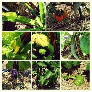 畑の野菜。 やっと、少しずつ、 収穫できるようになりました❣️ 今年は、雨が続いて、虫が多く、 うどん粉病にもやられたりと、 思い通りに育ってくれません😞
