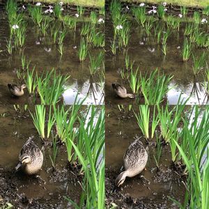 神代水生植物園 花菖蒲、イグサ、アシ、稲など湿地に珍しい植物がたくさん! カモが菖蒲畑でお仕事中?🦆 一生懸命、餌を探してました☺️ かわいい🎵