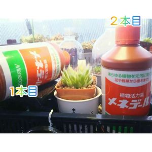 500mlメネデール 夏から使って… 2本目突入〜( ゚Д゚ノノ☆ 多肉らへ…使う 使わずの、比較はしていないけど、 カット苗や抜き苗、発芽発根した多肉たちが無事に育つよう… 願掛け、願い込めて使ってた〜╭( ;;´ё`;)و ̑