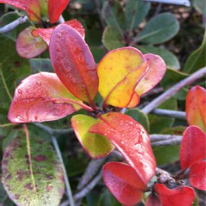 今朝もめちゃくちゃ寒いですね〜❄️ シャリンバイの葉が色づいて朝露に濡れてます❣️ 常緑樹のはずが、ところどころで赤くなってて。 その色の具合もすごく綺麗❣️