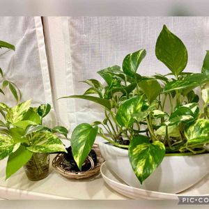 なが〜くリビングでいてはる ポトス エンジョイとマーブルクィーン🌈 この斑入りがやっぱり 好き💕 伸びてきた芽🌱を チョンチョン グラスに挿して増えたジュニアは3鉢 🥰 隣のグラスの子もそろそろ鉢植えしたげんと。。🌱