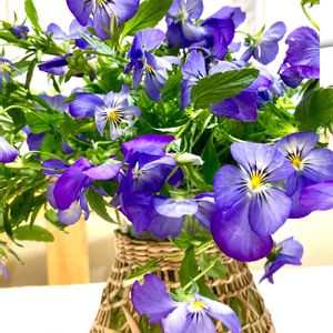 🌈雨降りの日はそれなりに。。🌈 雨で ぺっしゃんこになった 良く咲くスミレさん💦 やたら丈も伸びて シーズンも終わりになってきたんかなぁ。。 潰れてきたところ ばっさりカット もしかしたら まだ新芽出てくる? それはないか。。。😅 花瓶に挿して 最後まで 愛でることに。。 ほんのり 蜜の香りが。。。💕