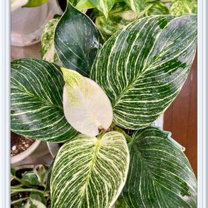 🌈フィロデンドロン バーキン🌈 大好き斑入り❤️ 小さいながら 新葉 真っ白から 少しずつ斑が出てきました。 この葉模様が 萌える💕💕💕 フィロデンドロンって ドロンチョ様みたいって 思っていましたが この名 ギリシャ語由来で デンドロン = 樹木 フィロ = 愛する 大きな樹木に気根を絡めながら成長する姿からきた名前なんだそうです。 (なんだか 艶めかしい。。💓) バーキンは 直立性なんで 気根は出ないとは思いますが この一族は ほんまに多種多様😍👍