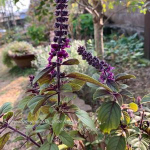 紫バジルさん🌱🌱 バジルのいい香りが👌 ずっと咲いて、くれています😊 余り、食卓には出番なし💦でも香りを楽しんでいます😂