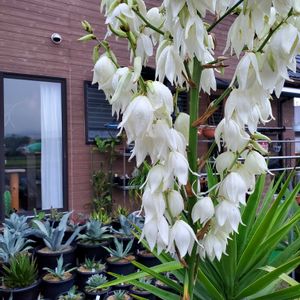 こんばんは🙋 帰宅したら見ーつけた😁 スネ毛ユッカ ユッカフィラメントーサ 💠が咲くよ😻