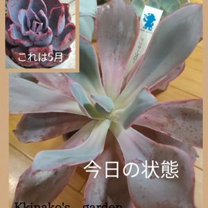 おはようございます。 うちのアフターグローさん、 真ん中から花芽が・・・ 😵💫 今年の夏も何度も暑さでゾウさんのようは🐘葉がシナッたり、元に戻ったりを繰り返していましたが、植物自体が 「もぅ、ここでは耐えられない!最終手段だ!花を咲かせて種を作って子孫を残して生き延びよう!」 みたいな気持ちが伝わってきます。😢 もうちょっと手を入れてあげれてれば、ど真ん中から花火のような花芽は出なかったのかなぁ?と仮説を立てて考えてました🥰 これからの姿に乞うご期待❗️笑