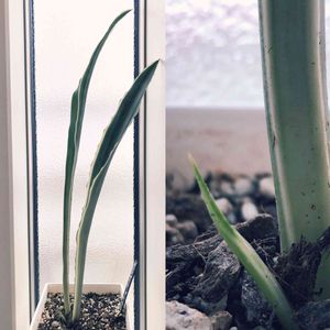 サンスベリア グイネンシスマノリン💕 白っぽい葉っぱがキレイな希少種です。 以前、一度は枯らしてしまい、再チャレンジ。 先月、新芽が出てきたので とっても嬉しいです♡ 順調かな~❤