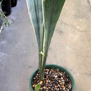 新しいサンスベリア買ってきたー🤗 ふらっと寄った山中育樹園に、かっこいいやつおったから思わず買ってしもた🤗 形はローレンティとおなじやけど、白いラインが素敵🤗
