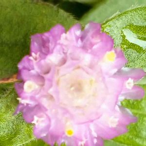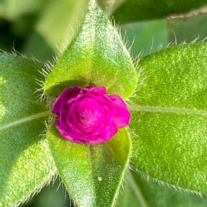 千日紅の蕾 のように見えるけど、これは苞のようです。訂正いたします。 先にいいね👍してくださった皆様失礼いたしました🙇♀️ ピンクのちっちゃな苞は蕾のように見えました。 可愛い苞の下で二枚の葉っぱが支えるように広がってます。 植物は本当に不思議がいっぱいです😱