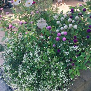 私の花園 🌿🌸☀️💜💮🌿☀️💜🌸💮🌿💮💜☀️🌸🌿 中央バーベナ-ポナリエシス(サンジャクバーベナ)、秋明菊、ウインターコスモス左上と右下は不明,😃💐💕
