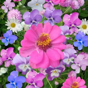 秘密の花園 🌿🌸💙🌸🌿🌸🌼🌺🌿🌺🌸🌼🌿🌸💙🌿 ジニア、ビオラ、小菊、千日紅