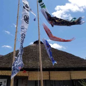 @Ouchi-juku Forsythia and carp-shaped streamers Happy Children's Day with lots of love 大内宿にて レンギョウと鯉のぼり こどもの日に愛を込めて ひ ひと昔もふた昔も前の と とても古い道具が並ぶ『町並み展示館』 と 遠い記憶の中 見覚えがあるようなモノたち き 奇妙な顔をして眺める姪に祖母から聞いた の 農家の暮らしを説明しちゃった タ 他愛もない話で姉妹三人 イ いくらでも笑える ム 昔話で盛り上がる ト 時計の針が戻って 子どものころ ラ ランドセルを背負っていたあのころ ベ 別世界に迷い込んだような時間旅行 ル ループのように続く思い出話