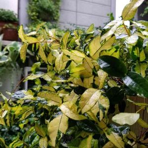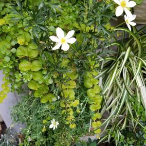Trachelospermum asiaticum A duckboard on the wall dropped this morning 黄金葛 今朝 壁のスノコが落ちてた 壁 壁掛けの植木鉢が3つない 面 面食らう起き抜けの光景 全 全然思いも寄らなかったこと 部 部屋から飛び出て しとしと雨の中 緑 緑の中に埋もれ ひっくり返った鉢を に 入念に持ち上げて救出 し 下にあった紫陽花の茎は折れてた た 耐久性に疑問も持たなかったスノコ い 一番上の板が重さに耐えられず の 伸びてカッコよくなったグリーン に にっちもさっちもいかないね これじゃ