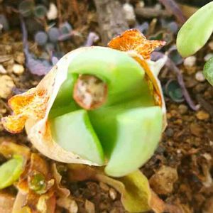 富貴玉<リトープス あわわわわ∑(゚Д゚) いよいよ 脱皮が始まりました‼️ なんだか神秘的✴︎ 2016年6月