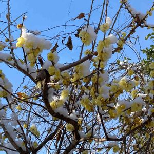 雪をかぶった蝋梅 昨日は雪❄️がたくさん降りました
