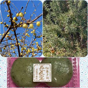雪がなくなった蝋梅とローズマリー 🏷和菓子の日に参加します つぶあん入りのよもぎ餅です
