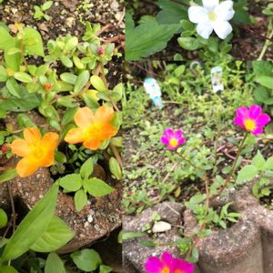 今日のお花ポーチュラカ🧡💛💗🏵️ 花スベリヒユ💮🌱 雑草対策で花壇に植えようと数日前に購入して、まだそのままになってる我が家のポーチュラカ達。