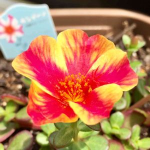 ポーチュラカ💠 普通よりだいぶ強いタイプという事で… 今後見守りたいと思います❤️ 挿し芽にしたら凄く増えそうです👍️ 同じ日に植えた八重咲きポーチュラカの方は、まだお花は1輪しか咲いていません💠