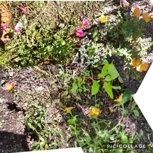 草が生える場所を少なくする為に庭のあちこちに植えたポーチュラカ🏵️ 結局ジャングルみたいな草むらに隠れてて、草取り後にやっと顔が見れるようになりました😂