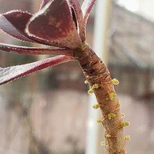 おや?? 子吹×3発見😆🙌 2020/6/30に載せている大豪丸(?)のカキコ1号君です。 この子には他にも1人子供が居て(上に雪だるまみたいに乗っかっていた⛄️)、その子を春頃切り分けたのでした。 そのせいでてっぺんがガサガサしてますね〜 (更に言ったら、だるまの上の方が大きくなりすぎて、親が下のほうに追いやられだいぶダニ被害に😱) それなのにまた頑張ってくれてありがとう😊🌱 晴れたら太陽とお水と少し肥料あげようかな💫