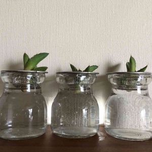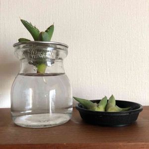 先週切り離したアガベ チタノタの子株ですが、根がないものを水差しで発根管理することにしました。昨年、笹の雪で成功したせいで調子こいてますが、成功するのでしょうか?