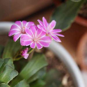 夏越し中のレウィシア。 葉っぱはクタクタですが、子株?脇芽?が出てきて花をつけています。 このまま育ってほしいです🙏
