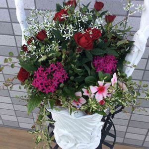 こんばんは。🌃 母の日なので、本日2pic目。 皆さまのとこに遊びに行けてないのにすみません! まだまだ続くよ〜。オステオの寄せ植え。 夕方に作ったばかりのもの。 ワタシ的には、かなり気に入ったー!✨ これ、少し前のpicのビオラを引き抜いて、 その空いたスペースに オステオをそのまま入れ込んだだけなの。🤣🤣🤣 解体してないの🤣🤣🤣 でもそれだけじゃ物足りなかったから・・・ パンジーの寄せ植えを解体したので、 入ってたオレガノを拝借。 この成長しきった、オレガノが気に入ったのです〜。💓💞 2日間に渡るコポー祭りに乗り遅れたけど💦 今朝、娘から母の日にプレゼントしてもらった コポーをお披露目。(*´︶`*)❤︎ 3ヶ月分のお小遣いが飛んでしまったようで。 婚約指輪みたいだわねー。😘 🍀オステオスペルマムアキラグランドキャニオンMIX 🍀オレガノヘレンハウゼン 🍀見元クローバー 🍀斑入りミントブッシュ ミラクルスター 🍀プリムローズジャスミン バリエガータ