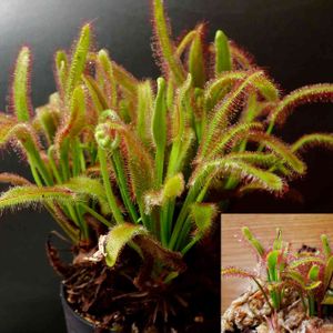 おはようございます、先月投稿したDrosera capensis white flw. x aliciaeさんの子供達です(´ω`) こぼれ種から発芽した子達が1年半経過しましたヾ(*´∀`*)ノ もう今年の花芽が何本か出て来てます。 去年もわんさか咲かせてくれたので、種が沢山、、、( ˊᵕˋ ;)💦 ちょっと期待してるのは、この子達は赤花なのですが、元々白花のカペンシスが親なのでそのうち実生の子供達から白花出てこないかな、、、と ただ、全部撒いて育てる訳にはいかないので、望み薄ですね( `ㅂ´ )