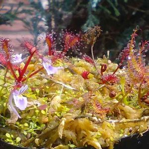 D. ペティオラリス×!オーデンシス🌱🌼 熱帯ドロセラの交配種です。🌱🌼 まだ咲いています。これから涼しくなり冬には、部屋に入れないといけないです。 20℃位が理想ですが15℃は保ちたいですね。温度が下がって来ると段々小さくなって来ます。葉が🌱