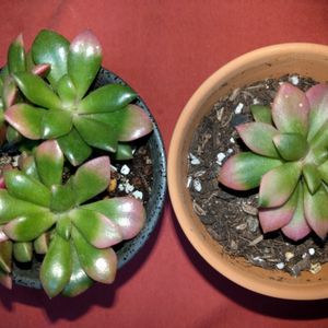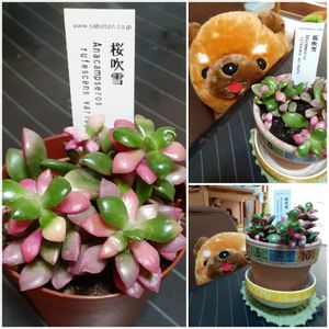 ☆今日の桜吹雪ちゃん☆ 左の白鉢は、元ふにっ子。 1番長い間陽に当たり風通しも良い所にいます☀🍃☀ ピンクが綺麗に出ていて、葉の白色もあり色味がとても可愛く育っています💕 下の葉は少しシワってますが、密度もよく、ふにっ子だったとは思えない成長ぶりです🌸🌸🌸 右の鉢は、一番遅くに花芽を付けた子です。 そこそこ長い間陽に当たり、風通しも良い所にいます☀🍃 ピンクは少なく緑っぽい子。 葉は全体的にシワっていますが、お水我慢させてると塔になり面白いです😚 弱ってヤバそうな感じはしません🌸 土の配合や鉢の質(右の湯呑みは穴なし)などの違いもあるのかもしれませんが、陽に当てる時間の違いが大きいような印象です🤔 左の白とピンクのコントラストがあまりにも可愛いので、来年はみんなしっかり陽に当てて育てようと思います♥ この酷暑も昼過ぎまで直射日光浴びて元気にしてるのでアナカンさんはほんとに強靭ですね😆✨ 追記。 あまり成長した桜吹雪さん見かけませんが、可愛くないから撮ってないのか、大きくなるとカットしてるのかな?? 倒れてきてるから私もカットすべきか悩んでいます( ˆ꒳ˆ; )
