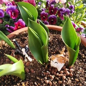 🌷🌷今日のお花🌷🌷 🌷原種チューリップが 葉っぱを 伸ばしてます🎵 お花はまだまだですね😁💓タノシミ 🌷🌷黄色のチューリップの中に 黄色と赤のハーフ&ハーフの キメラ咲きのチューリップです とても目立ってました😆🌷🌷