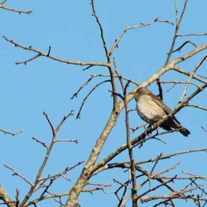 お写んぽ中見つけましたよ❗ 柿の木に休憩中の鳥 「ムクドリ」
