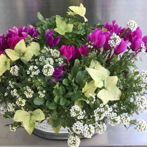 職場で活動している園芸部の部長がこしらえたアレンジメント💐 紫のシクラメンが綺麗です。 部長は花の美しさをより引き立てるため、お勉強して腕を磨いています(お顔も性格も美人です🤗) 種は撒きっぱなし、植えっぱなしで育った過程を楽しむ私とは真逆な部長だからこそ、楽しく活動出来ております。 和む〜🤭 ボスの庭、好き勝手し放題なのは内緒🤫