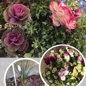 職場の園芸部長の新作アレンジメントは、バックの花かんざしとネモフィラがアクセントになっています。 前作からは、紫と白のビオラがイキイキと咲いています。 花壇には、クロッカスが白い蕾をつけて春の到来を教えてくれています☺️