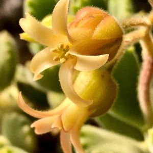 熊童子が咲きました〜 弱々な花芽だったけど 意外とシャキッと咲くんですね😅