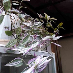 HCで、ちいさなちいさなポリ鉢に植えられて、忘れられたように置かれていたトラジスカンチアのラベンダー。 植え替えて、室内で管理してるけど、イマイチ。 やはり根が、ダメかな~💦 植え替えの時にもぅ、ヤバイ感じだったけど。 いくつか切って保険で水さしで発根させて、本体はもう少し深めの鉢に深めに植え替えてみようかなぁ💦
