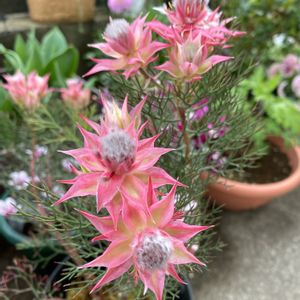 ヤマモガシ科 セルリア属 南アフリカ 原産 日本には切り花として オーストラリアより 輸入されたのが始まり 花にみえる部分は総苞 それに覆われた中心が花 耐寒性なく過湿を嫌い 日当たり 酸性土壌を好む セルリア カルメン 別名 ジョーイ セルリア オーストラリアにて育種 セルリア フロリダと セルリア ロセアとの 種間交雑種 2月の声をききました。 お花屋さんの店先に セルリアが並んでいます。 こちらのカルメンは 暑さ寒さが苦手なセルリアの中でも 比較的に強く 育てやすいそう。 関東以西なら 強い霜に あてないならば 戸外にて栽培可能 肥料はそれほどいらず とくにリン酸は控えめに 植物園や切り花コーナーで プロテアというお花を 目にしたことはありませんか? 少し想像しにくいですが 同種のお花です。 花期は2月~5月 花の周囲が濃桃色に色づいて あと少しで咲きそうですね。 寒波の影響で気温の低い時が 続きました。 そして 暖かい時もきましょう。 三寒四温というくらいですから 花も咲けることを 待ちわびているでしょうか… 今日1日 お疲れ様でした。