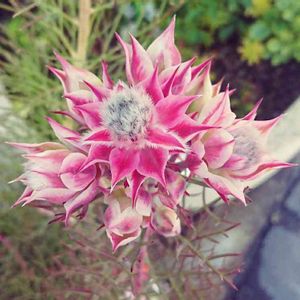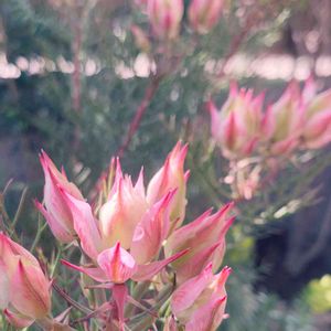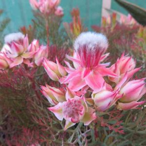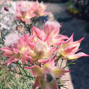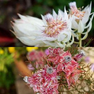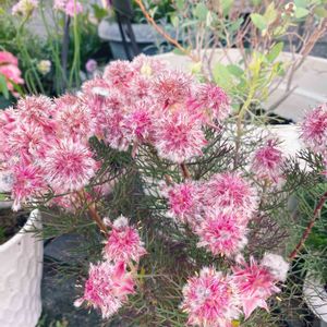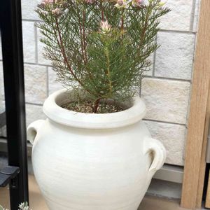 リューカデンドロン/サマーサン セルリア/カルメン フランネルフラワー/リトルエンジェル セルリア以外は日当たりの良い 玄関前に地植えします🌞 セルリアは気候に合わせて移動出来るよう 鉢植えに。 今日天気いいのでベージュの鉢植えを 白にペイントしています。