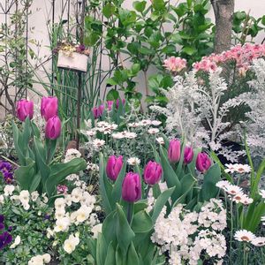 お庭のチューリップ(紫)が、咲いてきました😍 白っぽいお庭が、華やかになってきました💕
