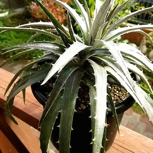 被災地の皆さん おはようございます。 今朝の1枚です。 棘が無いとアロエにしかみえませんが、棘棘しいディッキアさん… この夏で綺麗にこんもり成長しました。どこ触っても棘の攻撃に遭い、植え替え出来そうにないな…ということで、来年の春にまたまた先送りします。