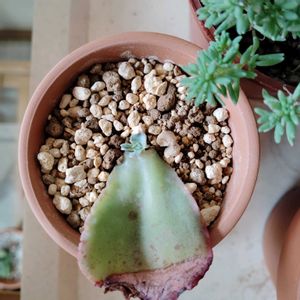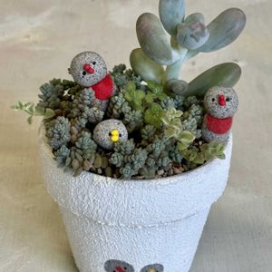 🏷️石の日 オジゾータン&イシコロタン💕 KHOチャンのオジゾータン鉢で参加しますね💕︎ 2枚目は、るるさんから頂いた実生苗🌿 kurumiさんの鉢とるるさんプレート✨ オジゾータンとイシコロタンは応援団📣✊ 大きく育ちますように🍀*゜ 暑さが戻ってきました🥵