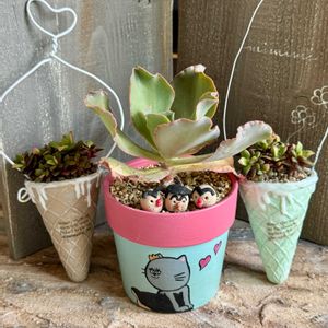 ( ;`ω´) (`ω´;(`ω´; )ヒソヒソ 両タンA 『えっ😳💦 オヤジフェスティバル終わったのか⁉️ 俺たちの出番無くなるじゃねぇか💢』 両タンB 『いや、それがGunkoさんが新しいタグ🏷️オヤジ活ってぇのを作ったから、今度はそれで何時でも出て来れるみたいだゼ😙』 両タンC 『オレ達がいなきゃ始まらないしな❗️』 両タンABC 『ガッハッハッꉂ🤣🤣🤣𐤔𐤔』 ってな感じで、盛り上がってる両タンズ😙 2枚目は拡大版デス✨ Gunkoさんお疲れ様でした🥰 グッズでご縁のあった皆さまありがとうございました💕 お供は45さんの鉢 🏷️毎月27日はpeanyatsの日 参加しますね✨ 高砂の翁🌿は、花芽に付いてた子株が大きくなった子😍✨ 日陰に置いたら黒いボツボツが出来てきて、お薬撒きました。 黒ボツの葉は枯れてきたけど、新芽は伸びて来たので元気そうです🌿 mimirinチャンのアイスクリーム🍦鉢には、大きくなってきた桜吹雪🌸 こちらも元気に育ってます😄 来週は40℃に迫る勢いとか💦 なんとか元気に過ごせます様に🍀